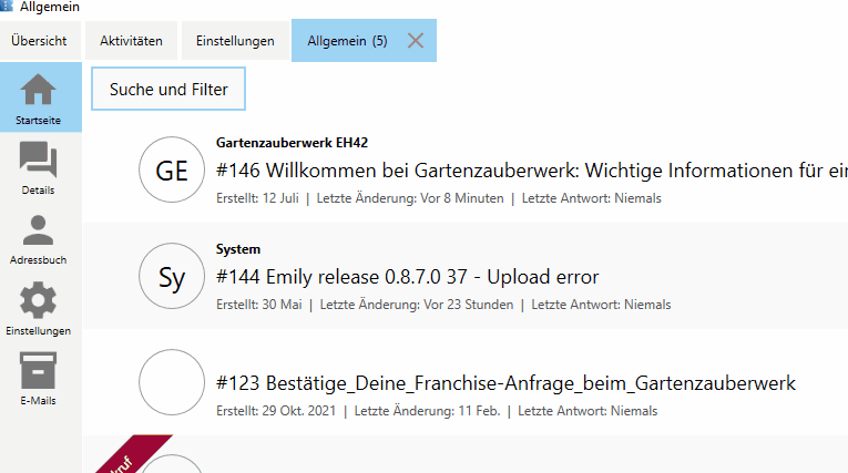 Es können nun mehrere Tickets markiert und als Gruppenoperation als erledigt oder spam markiert werden.