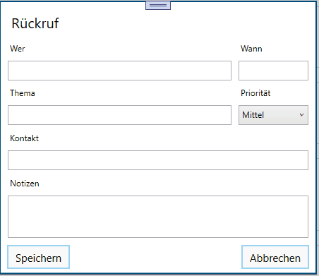Sobald du den Status eines Tickets auf Rückruf änderst, öffnet sich ein Dialogfenster, in dem du die Details des Rückrufs eingeben kannst.