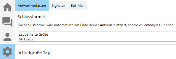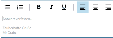 Die Schlussformel wird automatisch ans Ende deiner Antwort gesetzt, sobald du anfängst zu tippen.
